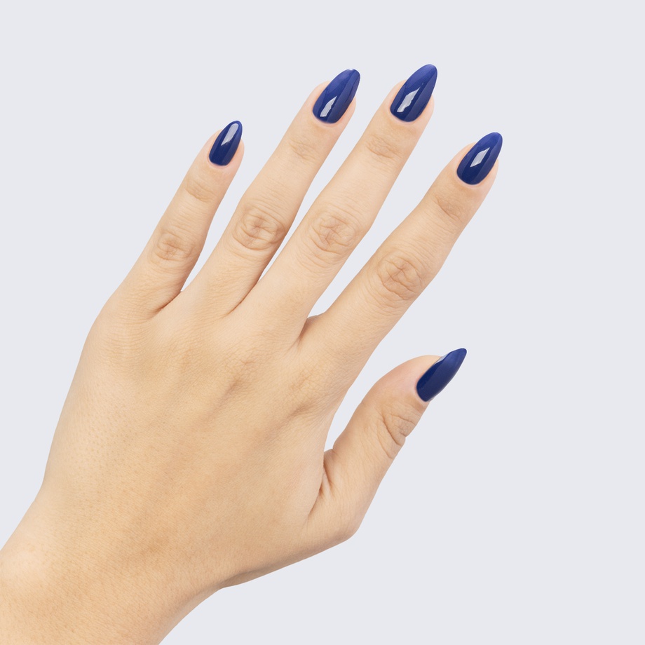 True indigo. Dark. 1 coat sheer, 2+ coats opaque. Cool undertone.