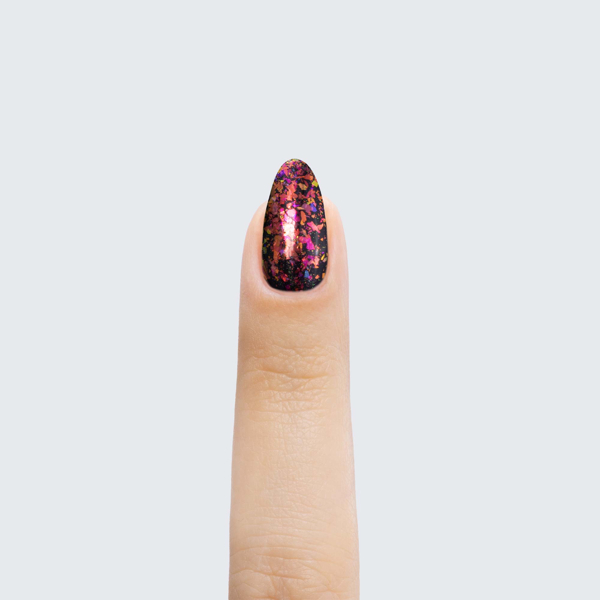 The ethereal allure of PRECIOUS FLAKES makes them a marvelous choice for manicures whose beauty can outreach any stretch of imagination. Because they are semi-translucent, each individual colour scheme takes on surprisingly varied hues depending on which gel polish you use as a base.